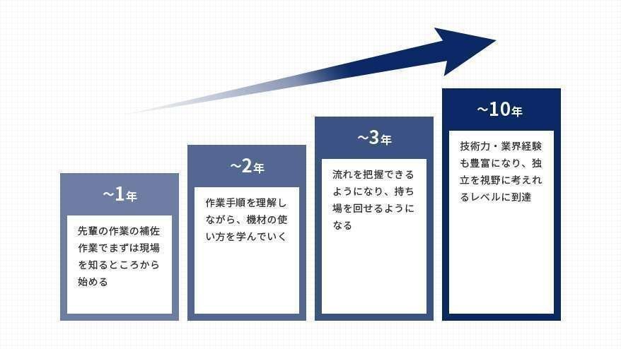弊社はOJTへの取り組みに力を入れており、未経験の方も安心して仕事を覚えられる環境が整っています。一人前の職人へと成長するまで、私たちが責任を持って育成いたしますので、なにも心配することはありません。